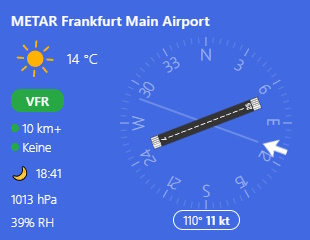 Speziell für den Flugbetrieb an grossen Flughäfen gibt es alle 20 Minuten einen aktuellen, offiziellen Wetterbericht (METAR) und eine Prognose (TAF).
